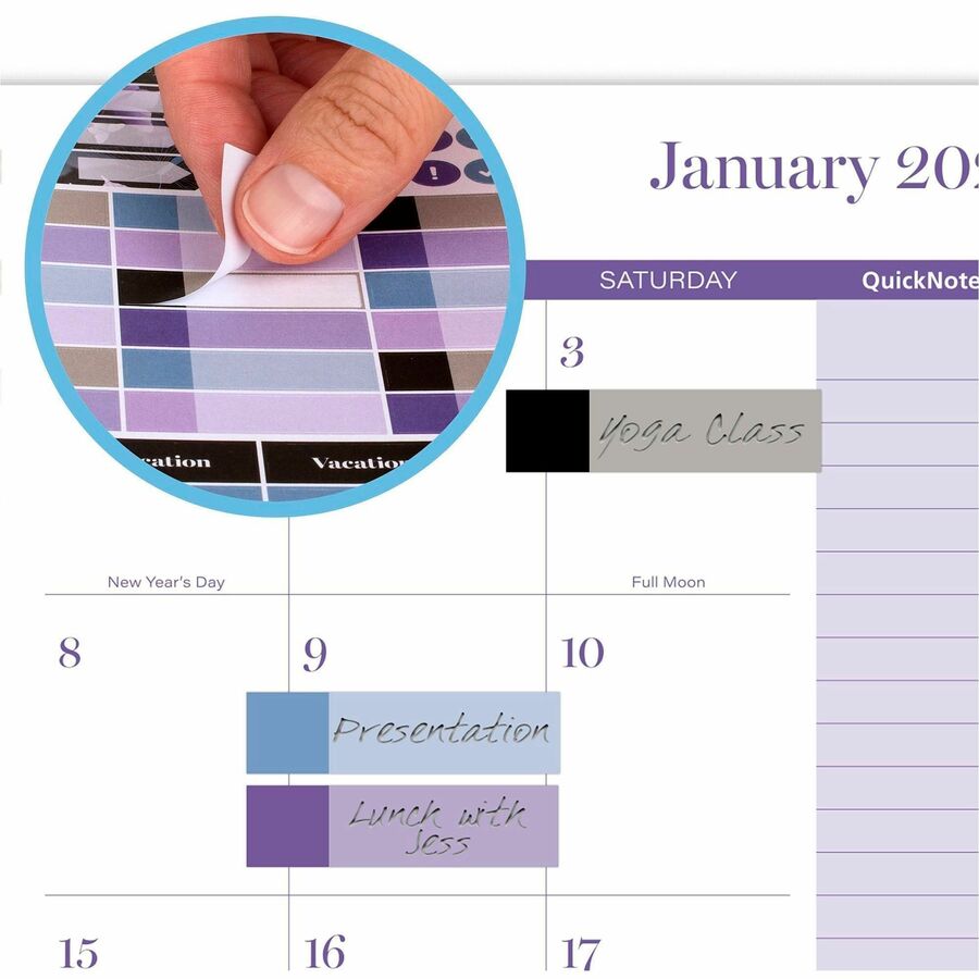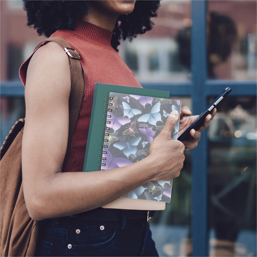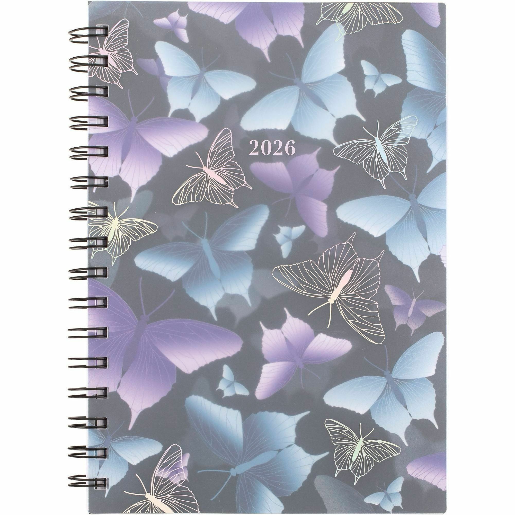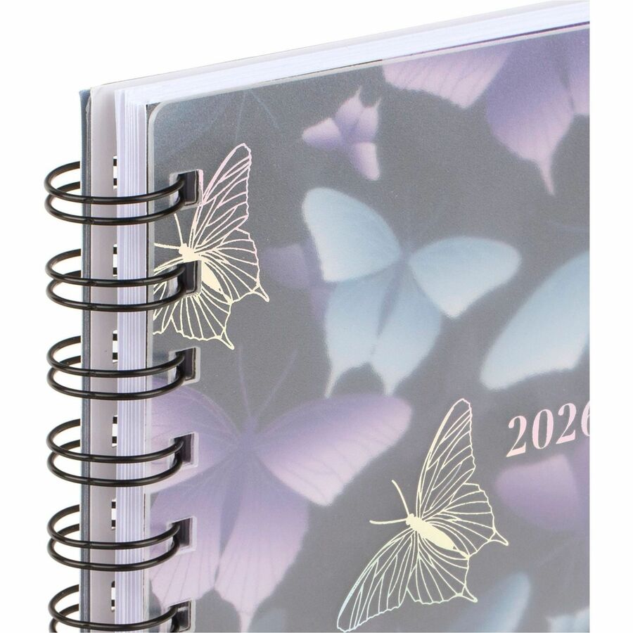 Mariah Weekly Monthly Planner makes it easy to track family events, fitness goals and everything in between so your dreams can take flight. Dated planning pages range 12 months from January to December and feature a QuickNotes area on both weekly and monthly pages to help you stay on track all year long. Two-page-per-week spreads include open daily sections from Monday to Sunday. Tabbed monthly pages help you see your big picture plans in an instant with unruled daily blocks from Sunday to Saturday and past and future monthly reference calendars. Special pages include a double-sided poly pocket, three-year reference calendar, holiday list, two future planning pages, five note-taking pages and a sticker sheet. Durable poly cover with blue and purple butterfly design helps the planner stand up to wear and tear no matter where your day takes you. Twin-wire binding helps keep your pages secure and won't snag on your bag or clothing.
